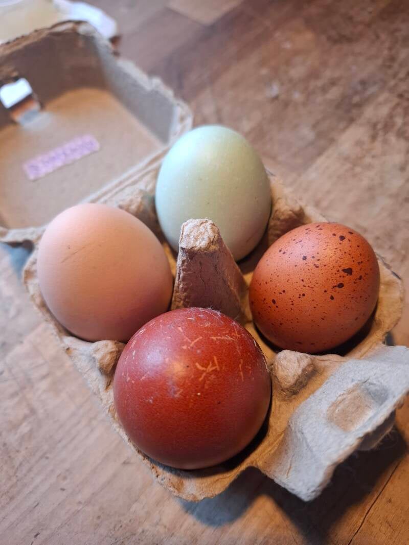 Munat ovat omien kanojen ja kyllä koko vain vaikuttaa. Värillä ei väliä, kanamme kun munivat nykyään monenkirjavaa sorttia. 😂🐔